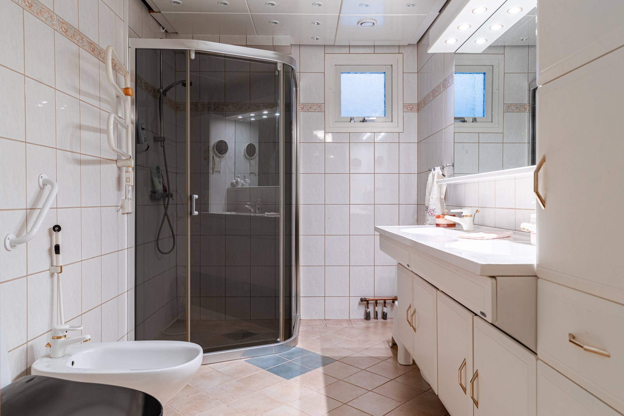 Byggnadstyp2-plansvilla i souterrängByggnadsår1986FasadPuts och träStommeBetongFönster3-glasBjälklagTräTakPappGrundBetongplatta (souterräng)UppvärmningTakvärme. Luft/luft-värmepump inne ur funktion. Separat värmepump till pool.Vatten/avloppKommunalt vatten, Kommunalt avlopp.TomtenHörntomt med poolområde och havsutsikt.UteplatsPoolområde med kringliggande stensättning.BilplatsPlats för två bilar utanför garaget, en bil i garaget samt ytterligare en bilplats på entrésidan. Besöksparkeringar finns på gatan.Renovering1988Övriga utrymmenFristående garagebyggnad med elportTV- och internetanslutning