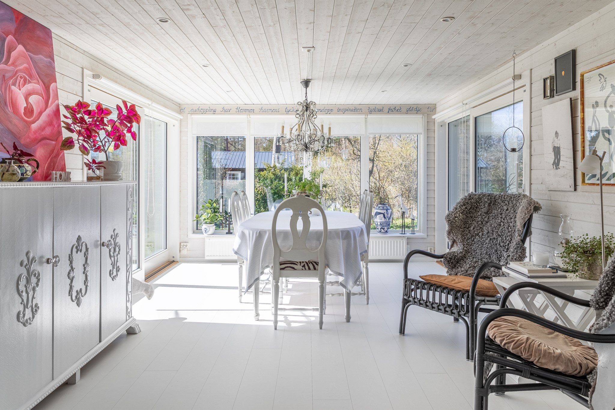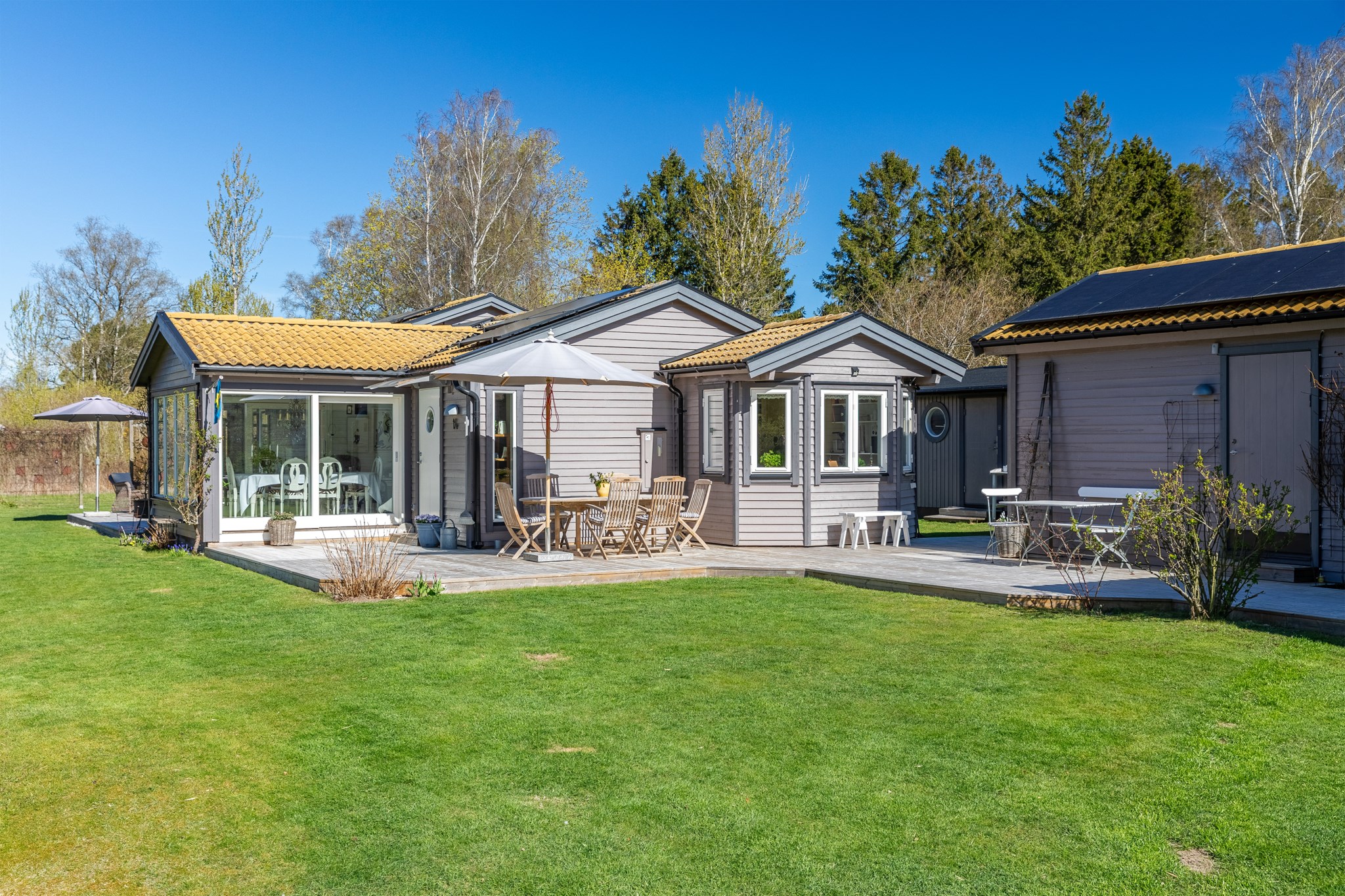 I Glimminge Plantering väntar denna ljuvliga bostad som fångar något alldeles särskilt – här infinner sig ett lugn och rofyllda dagar. Ta en stillsam promenad längs den grusade vägen som leder ner till havet, och badbryggan, eller ta en cykeltur till Rammsjö. Fåglarnas kvitter, doften av hav och den lummiga omgivningen gör detta till en underbar plats att landa på. Den stora, levande trädgården erbjuder flera uteplatser som låter dig följa solen från morgonkaffet till sena sommarkvällar. Bostaden bjuder på en varm och genuin känsla med charm i varje vrå. Den inglasade matplatsen med skjutpartier öppnar upp mot grillplatsen utanför. Köket går i en mjuk gul ton och kompletteras av fint burspråk. Träspontade väggar, målat brädtak och öppen spis. Här finns badrum, två sovrum, det ena generöst med tillhörande klädkammare. På tomten finns en komplett gäststuga, med allrum, badrum och två sovrum. Här är förberett för att sätta in ett kök för den som vill skapa en helt självständig bostad. Utöver detta finns även två förråd och vedbod. Solceller med batterilagring finns installerat. Välkommen till ett ljuvligt sommarparadis – lika fint för dig som vill njuta året runt.
