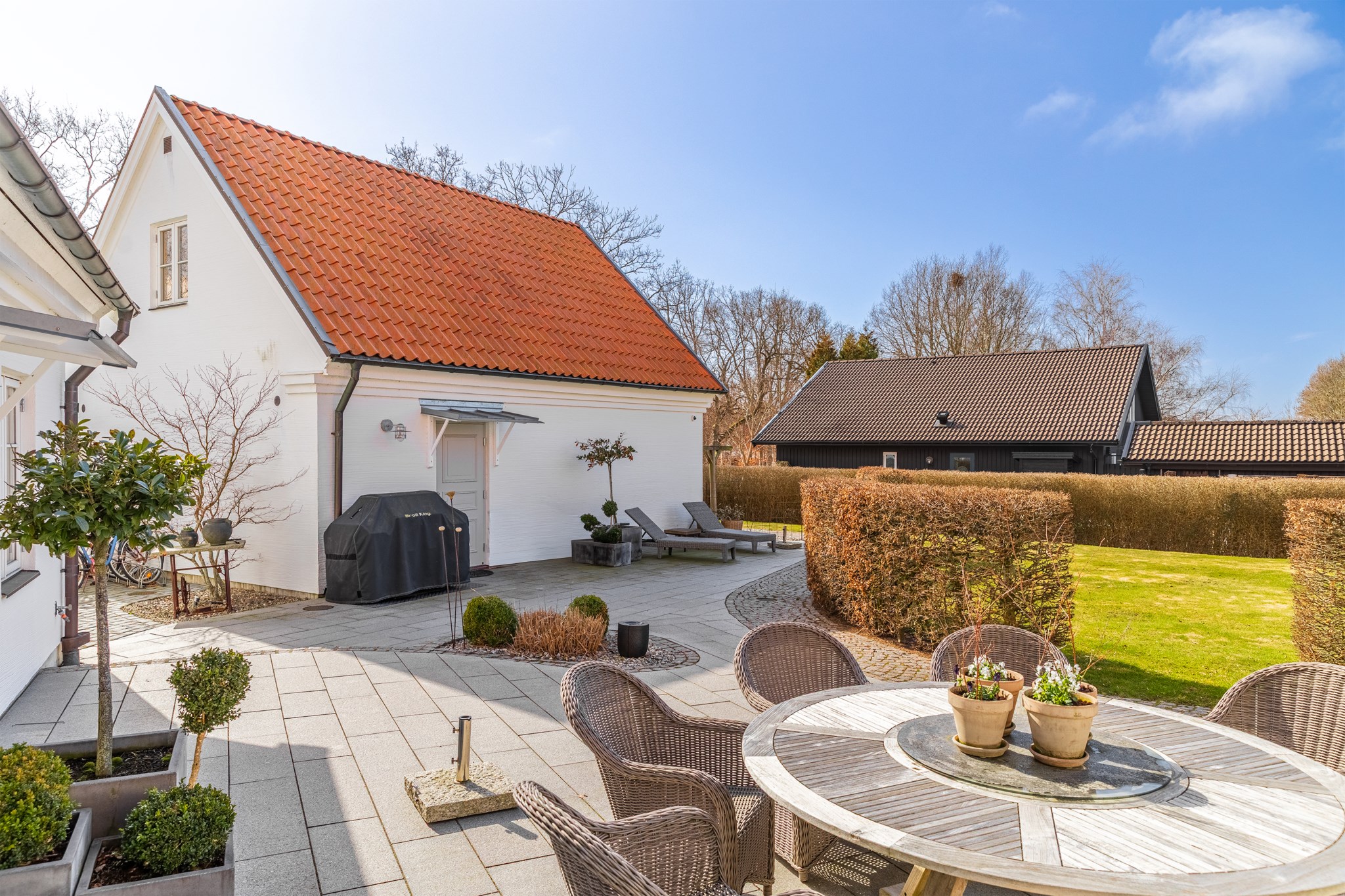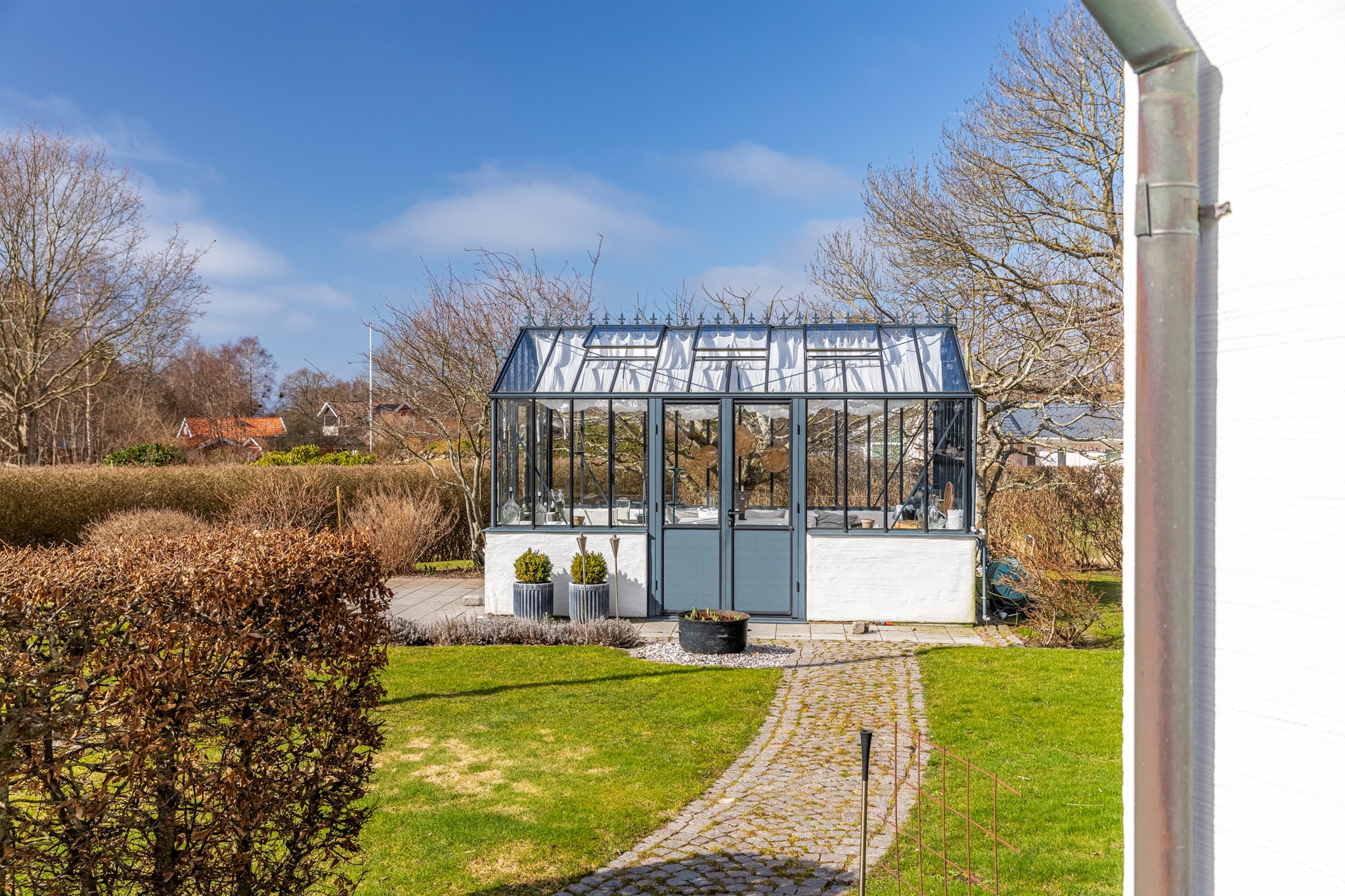 I Ranarpsstrand, ett litet sommarparadis med skön och otvungen atmosfär på Bjäres solsida, hittar du halvöns bästa sandstrand, liten hamn och magisk natur. I lugnt kvarter med privat läge säljs denna välbyggda och omsorgsfullt skötta bostad från 1999 ritad av Stellan Paulie. Här är det lätt att bo året om eller om du hellre vill, under de varma sommarmånaderna. Den putsade fasaden, de spröjsade fönsterna samt den representativ entrén sätter stilen för detta fantastiska och välskötta hem. Tilltalande planlösning med skönt flöde, harmonisk och genomgående färgsättning, vackert ljus och fin kontakt med utemiljön. Här finns plats för många! Med fem sovrum och två badrum blir det aldrig trångt. Husets hjärta är det imponerande sällskapsrummet med centralt placerad eldstad, stor vinkyl och dubbla altandörrar ut till den stora solterrassen. Platsbyggt kök från Kvänum med praktisk köksö och vedspis höjer känslan. Den ostörda trädgårdssidan mot sydväst får dig att längta hem innan du flyttat in. Dubbelgarage med möjlighet att inreda vinden till hemmakontor eller gästrum. Toppklass!