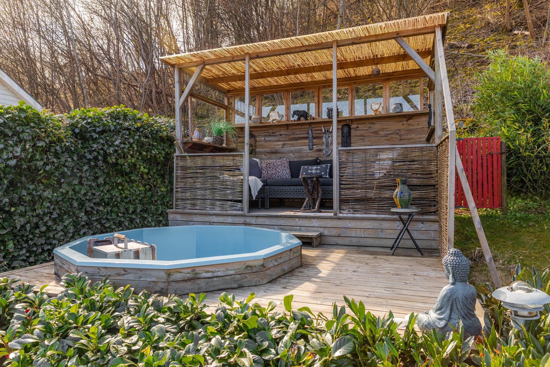 Afrikanska hörnan med vedeldad badtunna