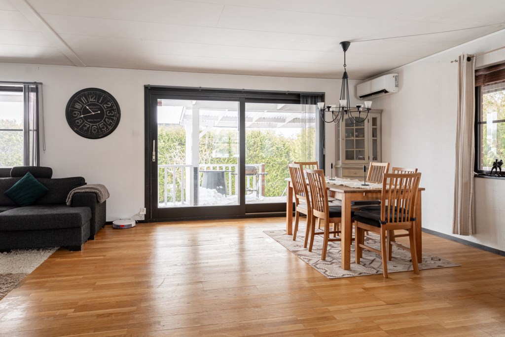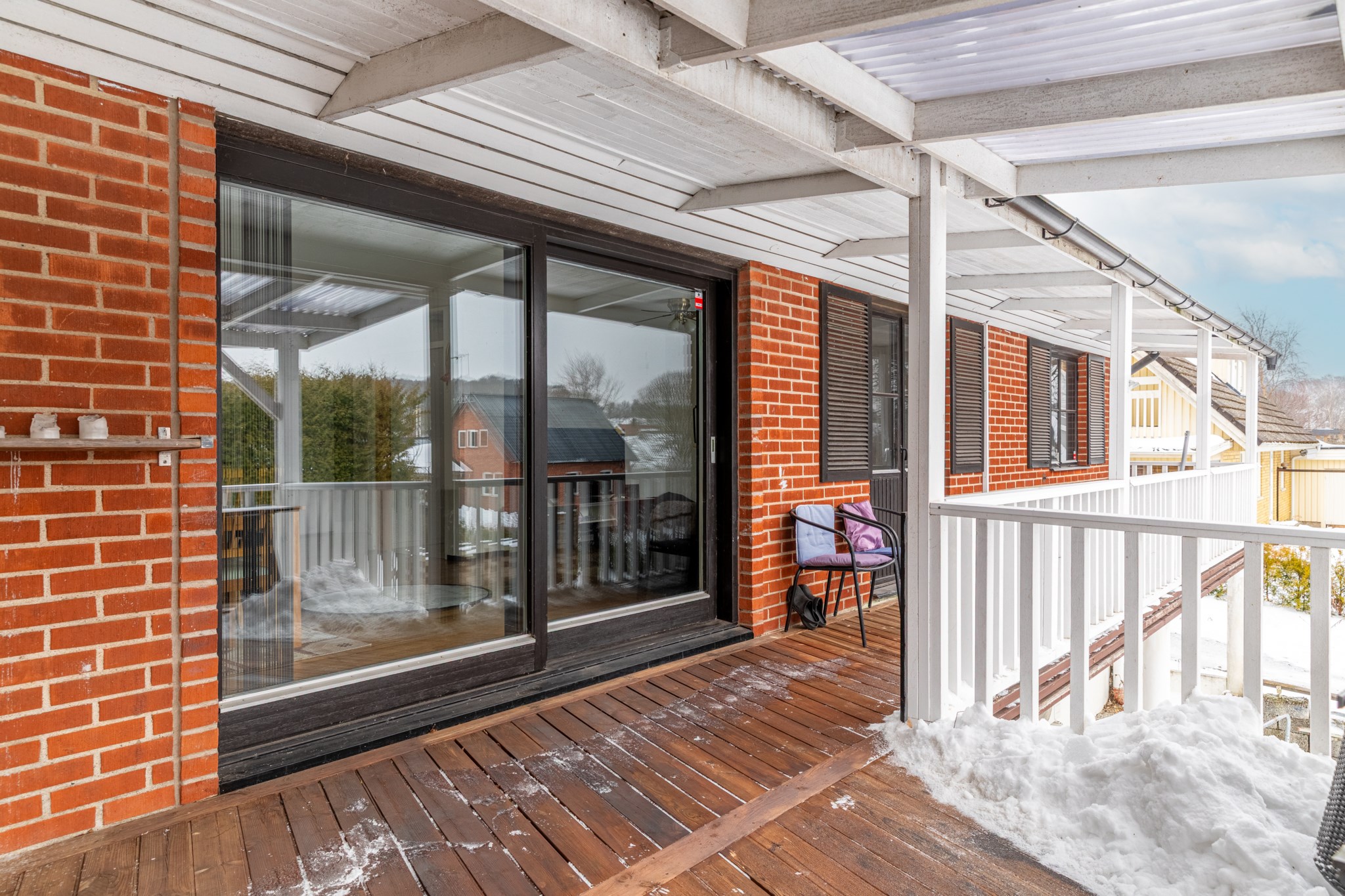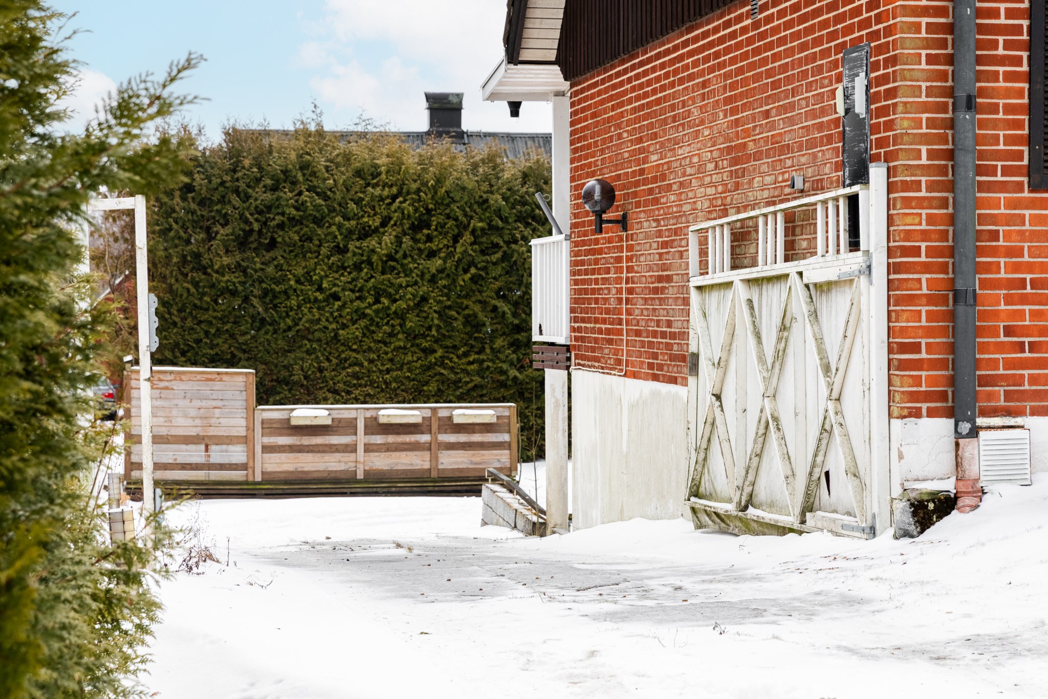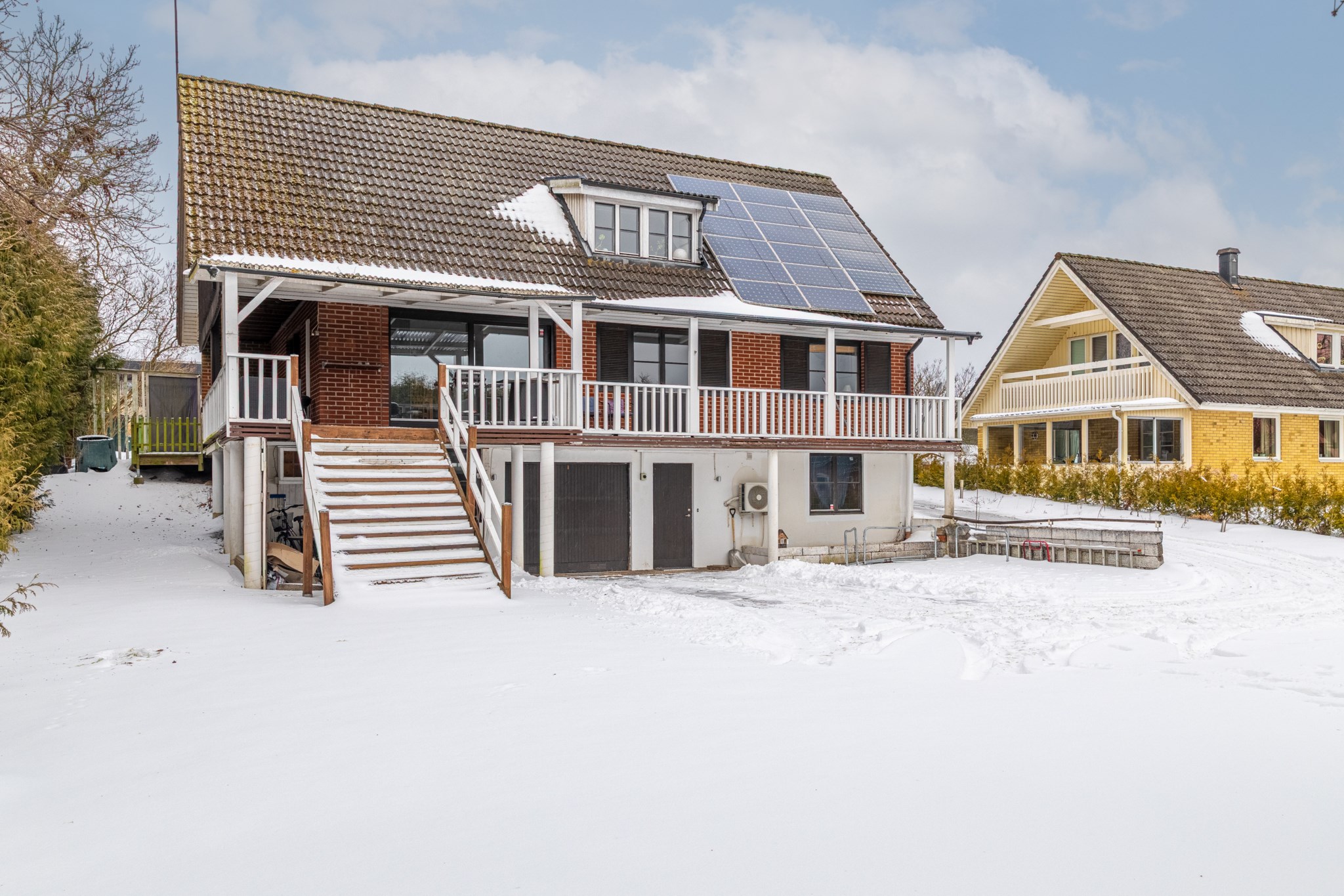 ByggnadstypSouterrängByggnadsår1974FasadTegel och träStommeBetong + träFönster2-glasfönster isolerBjälklagTräTakBetongpannorGrundPlatta på markUppvärmningDubbla luft - luft värmepumpar. Solceller finns men är ej inkoppladeVatten/avloppKommunalt vatten, Kommunalt avlopp.TomtenInsynsskyddad trädgårdstomt omringad av uppvuxen häck, gräsmatta och infart till garage.UteplatsStor balkong/veranda längs med huset runt husknuten i soligt söderläge mot trädgårdssidan. Friliggande altan med plats för möblemang på tomten.BilplatsParkeringsmöjlighet finns på uppfarten och på baksidan av tomten. Finns även parkeringsmöjlighet i garageRenoveringWC/dusch bottenvåning -06TV- och internetanslutning