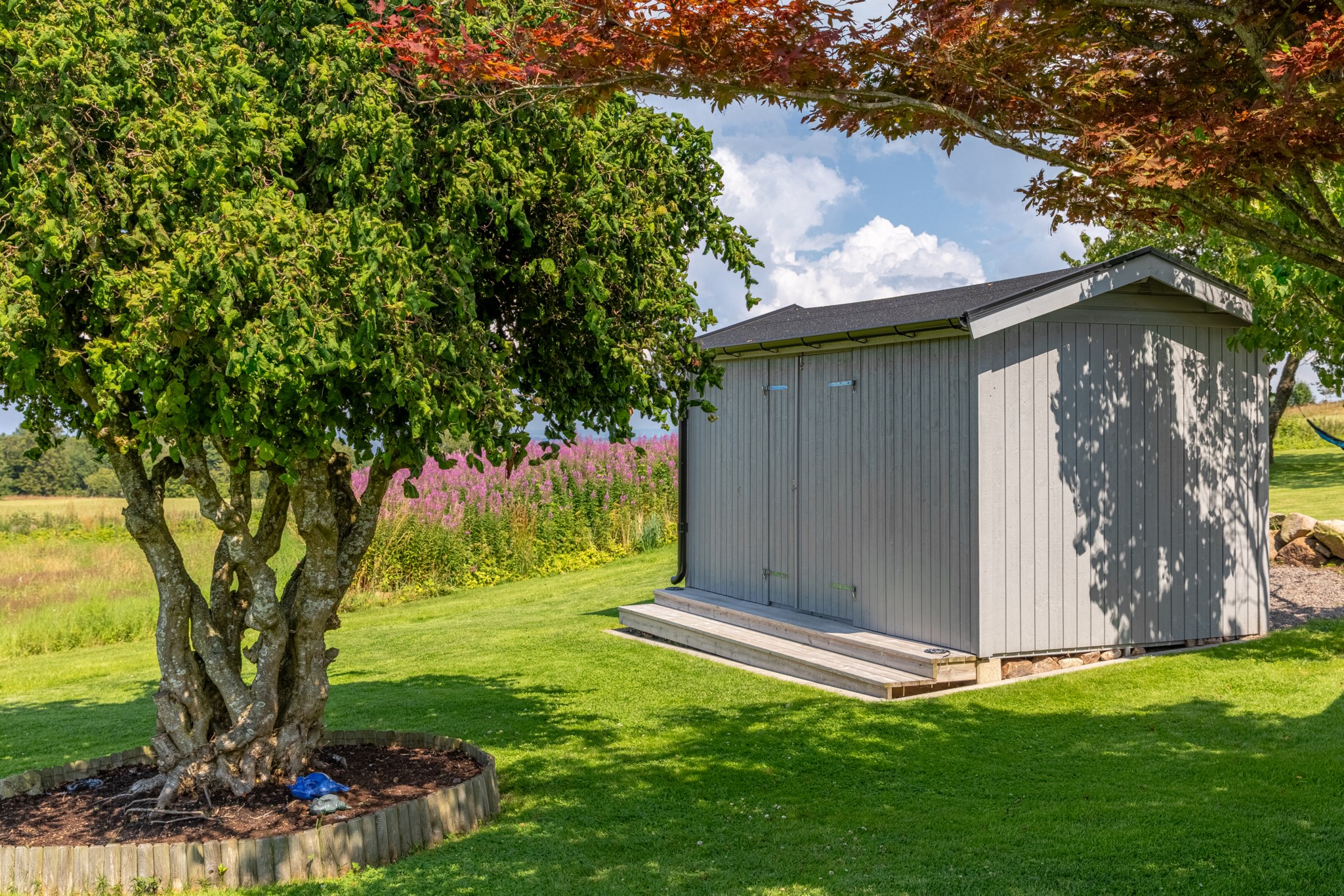 Friköpt och trevligt anlagd trädgårdstomt om 1 080 m² gränsande till jordbrukslandskapet.