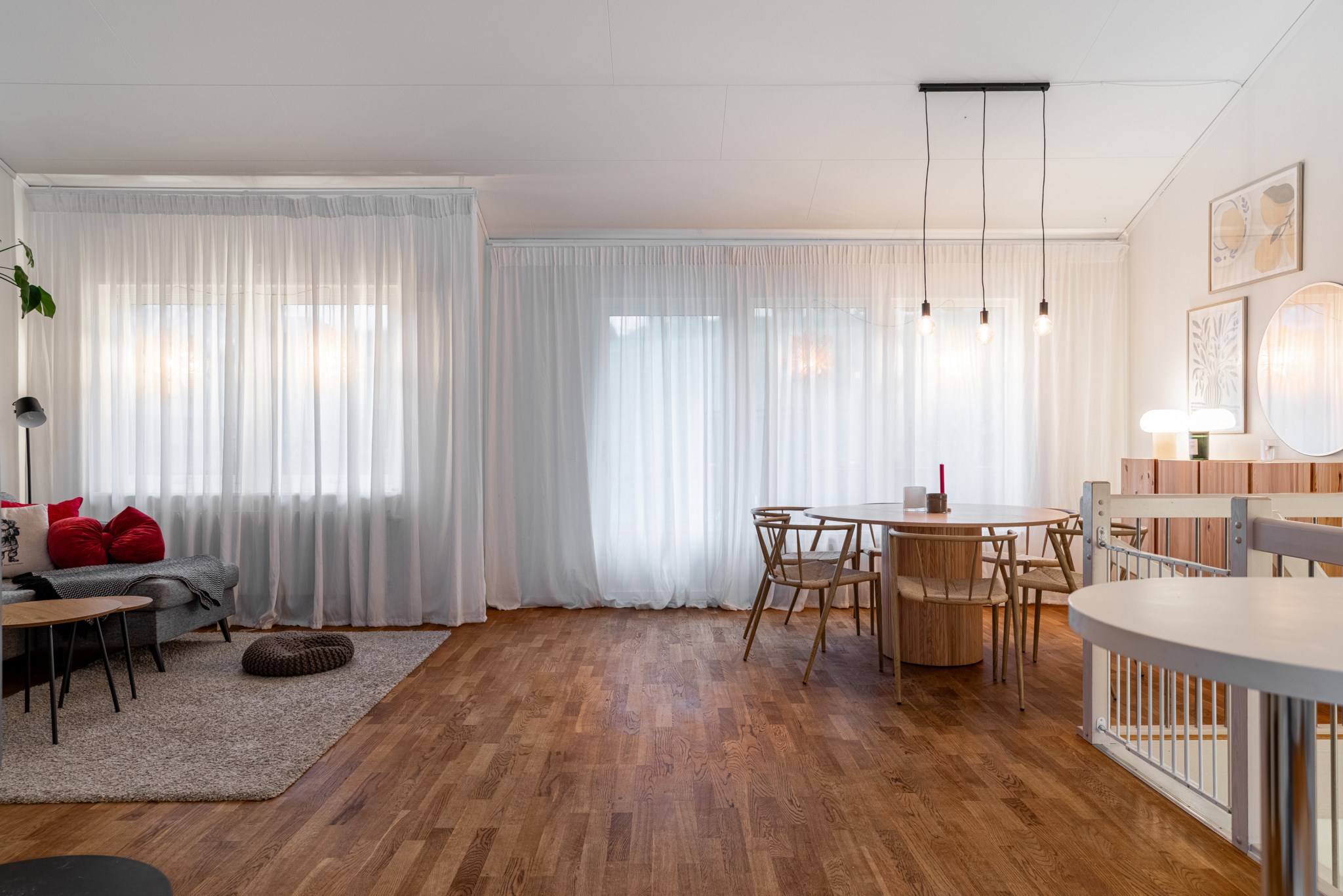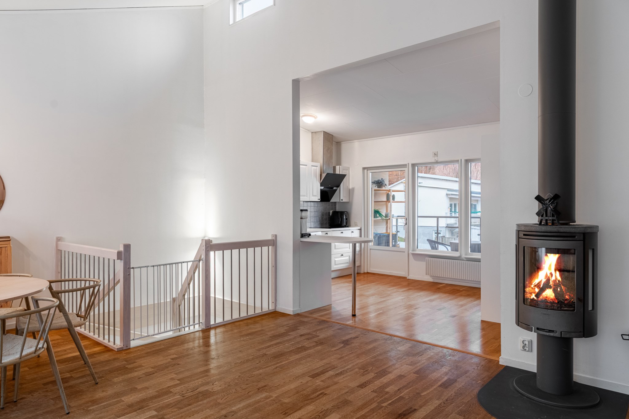 Nu saluförs komfortabelt radhus i två plan strax ovan Båstad, beläget i stillsam miljö med fin närhet till såväl Båstads utbud som rekreation. Bostaden passar utmärkt för familjen, paret eller den som uppskattar gott om plats för gäster, med sina 3–4 sovrum. Interiören präglas av imponerande takhöjd, värmande kamin och öppna ytor med skönt flöde mellan rum och våningsplan. Entréplanet utgör den privata delen av huset och erbjuder badrum, separat tvättstuga, två sovrum samt möjlighet till ett tredje. Planlösningen är genomtänkt och planerad för ett smidigt liv utan kompromisser. Bostaden passar lika väl året runt som för den som söker ett bekvämt och lättskött sommarboende. Parkering finns i direkt anslutning till entrén och förråd ger praktisk extra förvaring.
