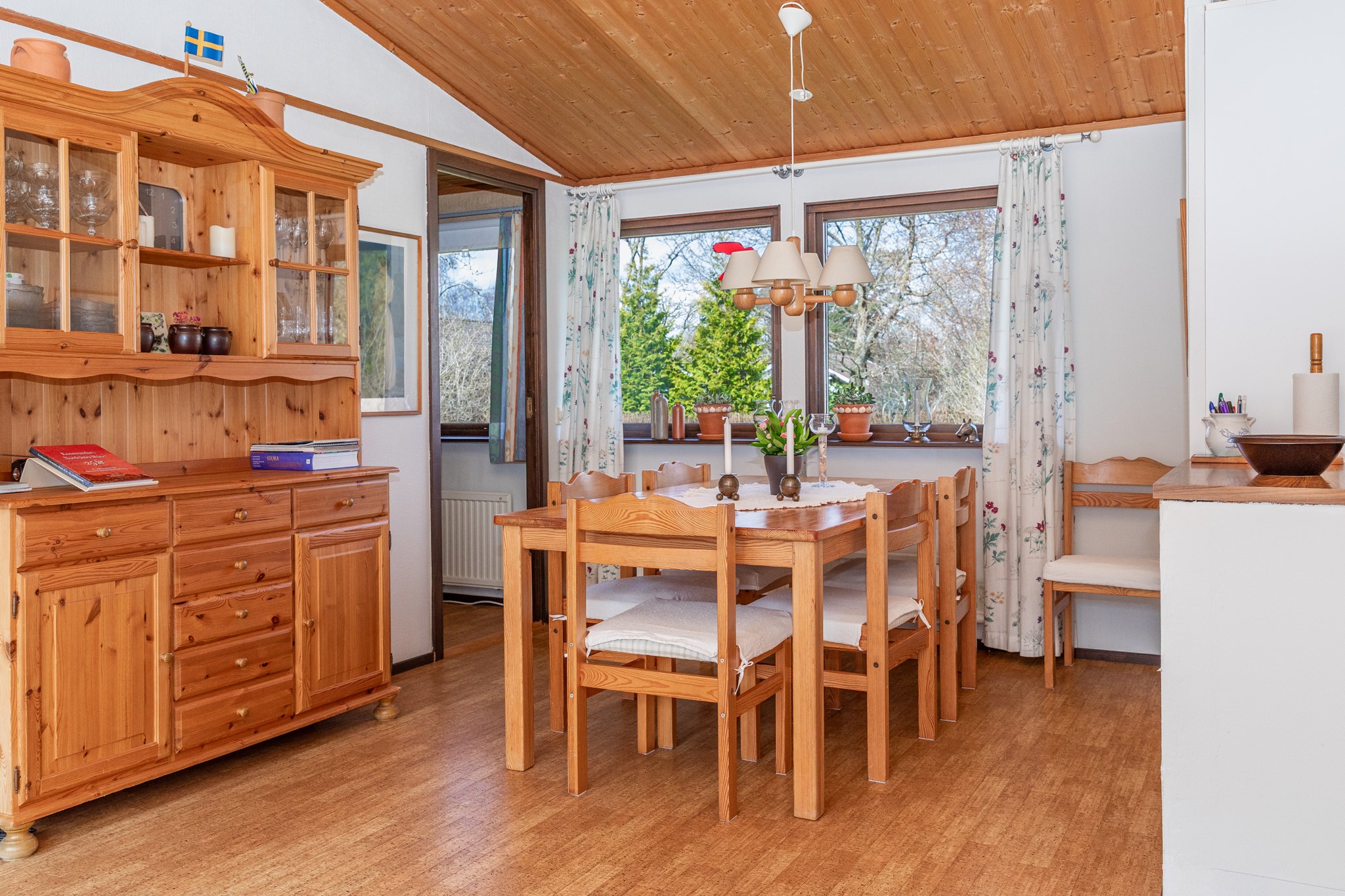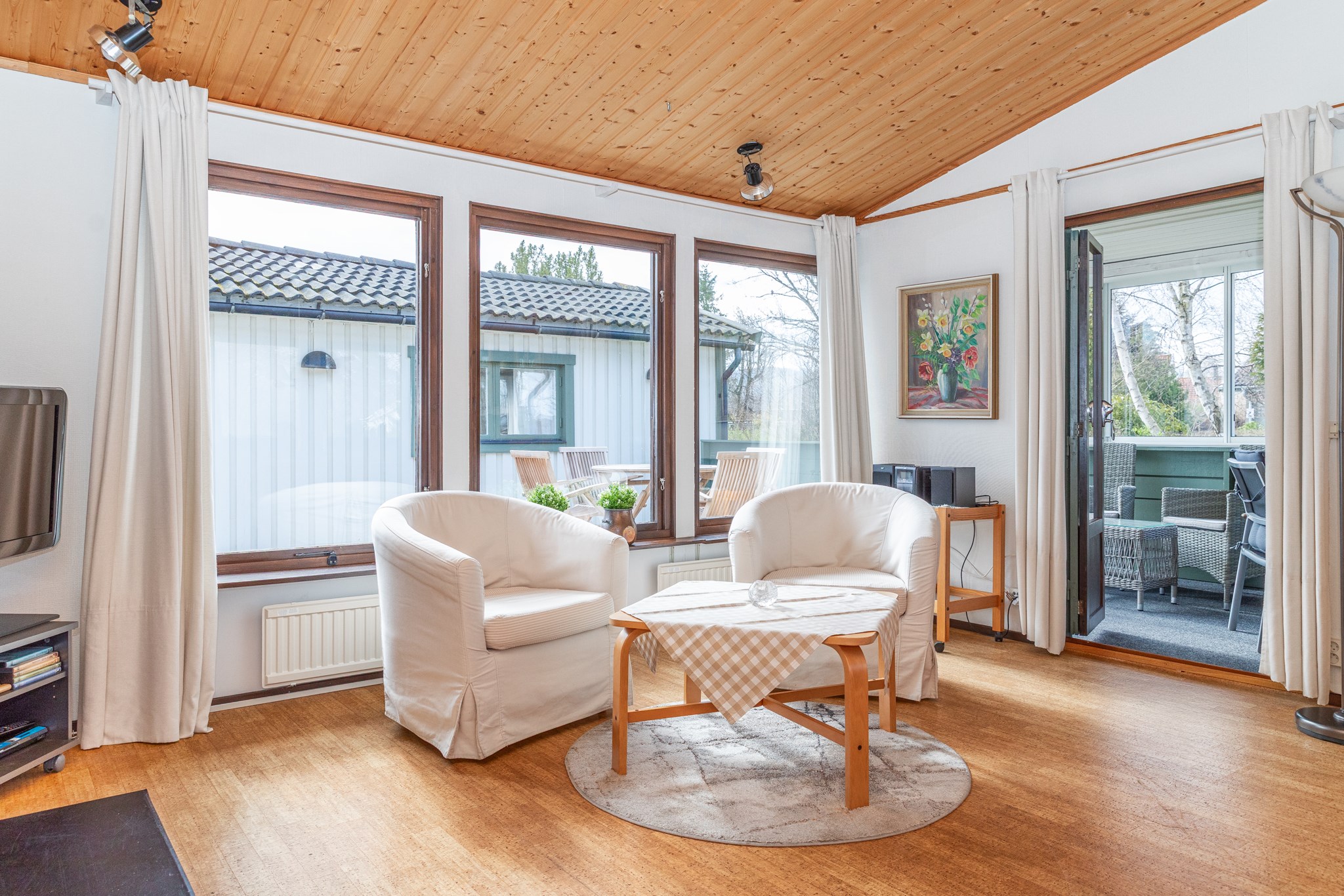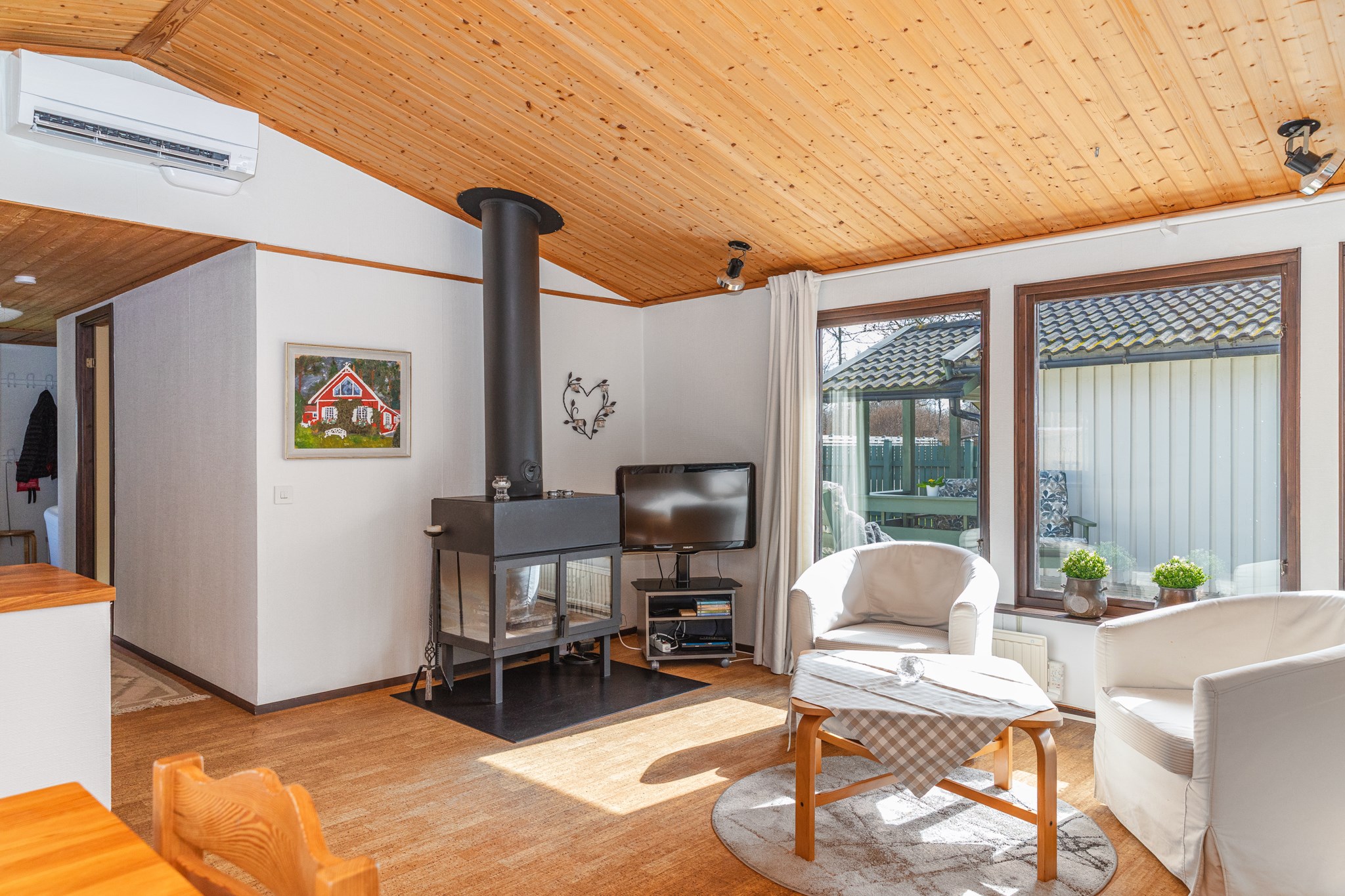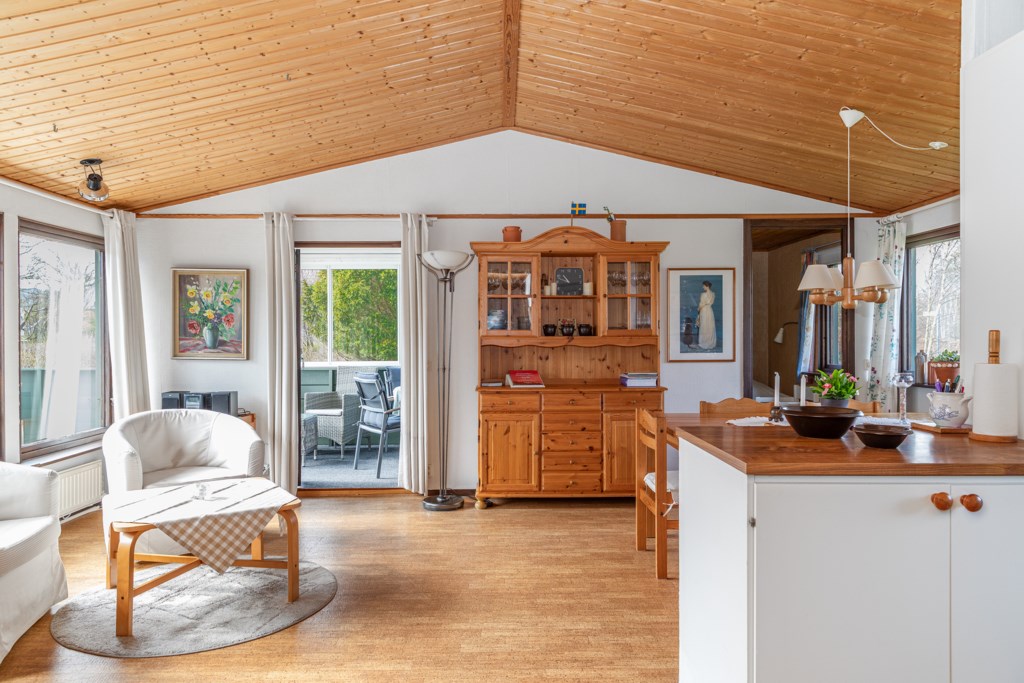 Här på lugn hörntomt, bara några minuter från havet, infinner sig den där speciella känslan av lugn. Morgonkaffet hittar sin plats i solen och framåt kvällen flyttar livet vidare in i uterummet. Bostadens hjärta är vardagsrummet som blir en självklar samlingspunkt med kamin, samtidigt som det fina ryggåstaket med träpanel tillför rummet en härlig känsla av rymd. Här finns tre sovrum, arbetsrum och badrum med tvättmöjlighet. På tomten finns fristående gästhus med pentry, badrum och sovdel – vilket gör det enkelt att ta emot gäster. En välkomnande bostad med eftertraktat strandnära läge – perfekt för sommarens lediga dagar.