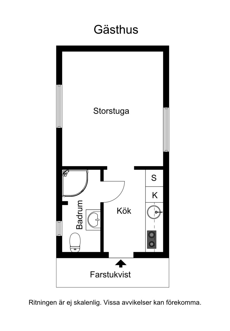 Gullig gäststuga byggd mitten på 50-talet, med pentry kök, wc/dusch och sovrum. Garage byggt ca 1990, med förråd. Vedbod/cykelförråd finns.