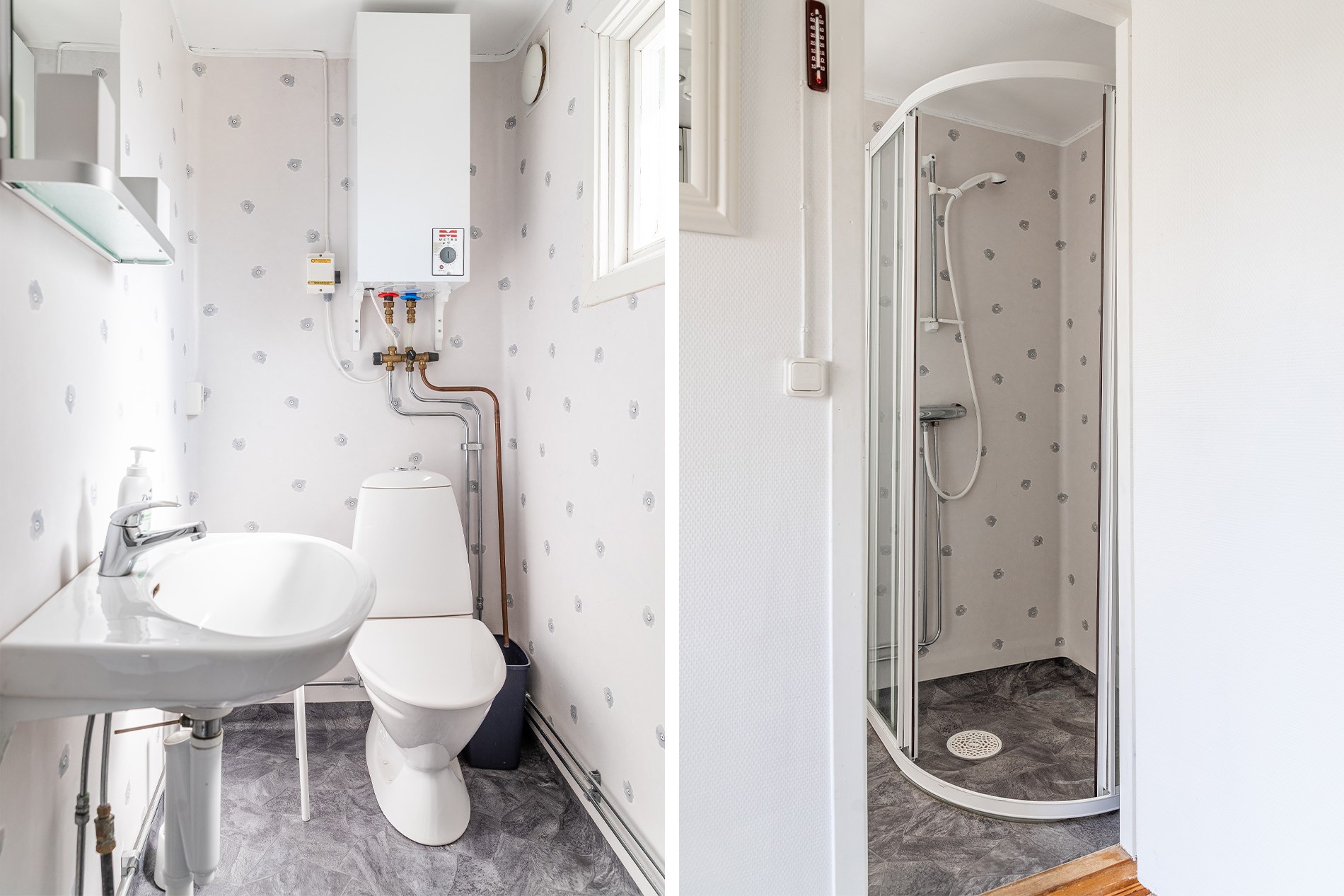 Luft/luftvärmepump, kamin + oljefyllda elradiatorer i både storstuga och gästhus