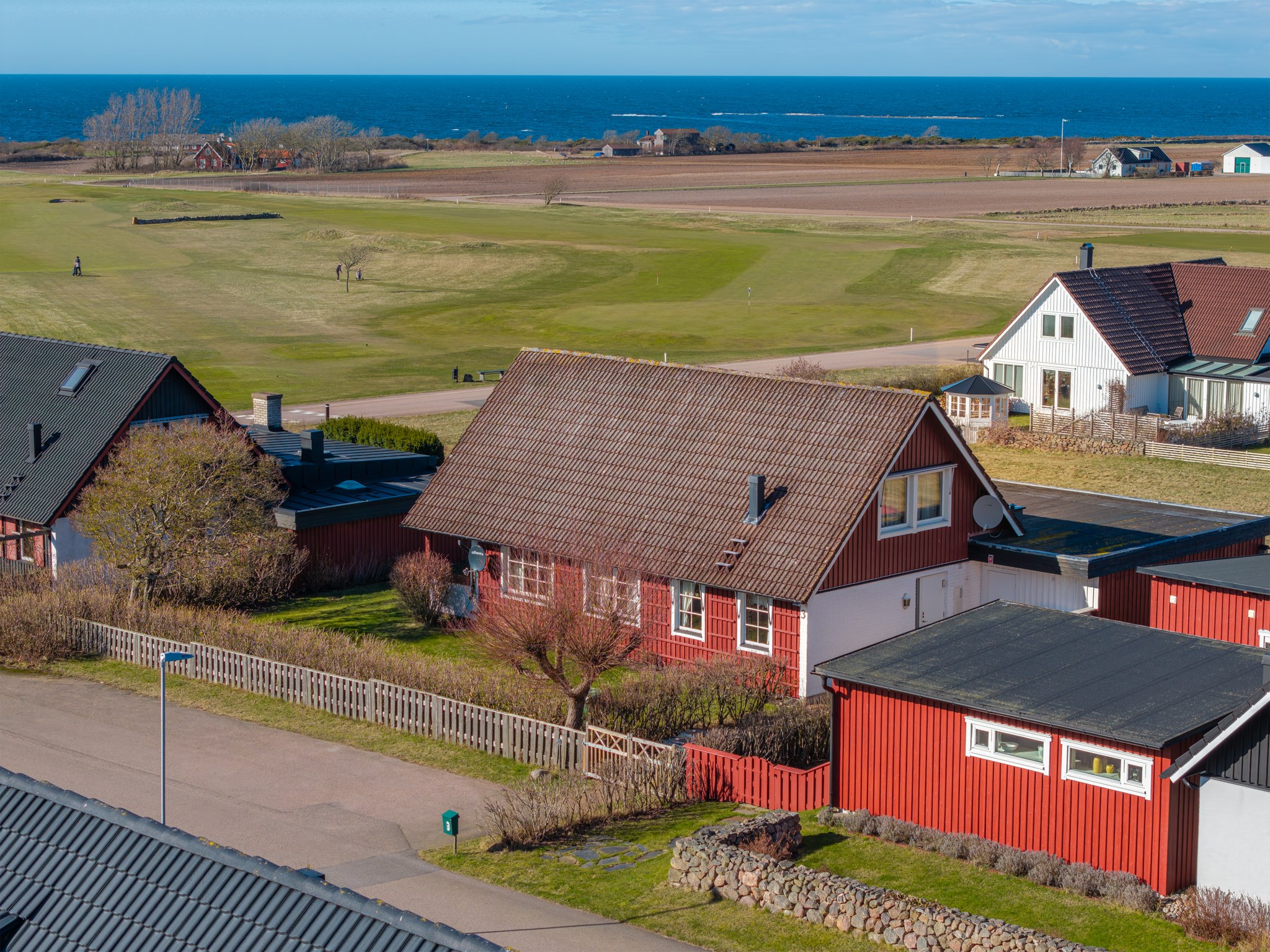Här vid kanten av vidunderlig natur, öppet landskap och fria vyer mot havet och grannen Torekovs GK, bor du i rymlig villa på solig tomt. Snöra på dig löparskorna och ta en runda längs havet med efterföljande dopp vid Svarta hallar. Efter lunch på klubbrestaurangen blir det 18 hål med vänner. Här är det lätt att leva både sommartid och året om. Bostaden är öppet planerad och har i entréplan fina och ljusa sociala ytor, kök, 3 sovrum och 2 badrum. En trappa upp finns allrum med ryggåstak, inbyggd utsiktsbalkong och ett sovrum. Fint inramad trädgård som gränsar mot grönområde. Generös uteplats mot väster med magisk utsikt över hav och golfbana. Här har du med fördel sena sommarmiddagar där du ser solen sänka sig i Kattegatt.