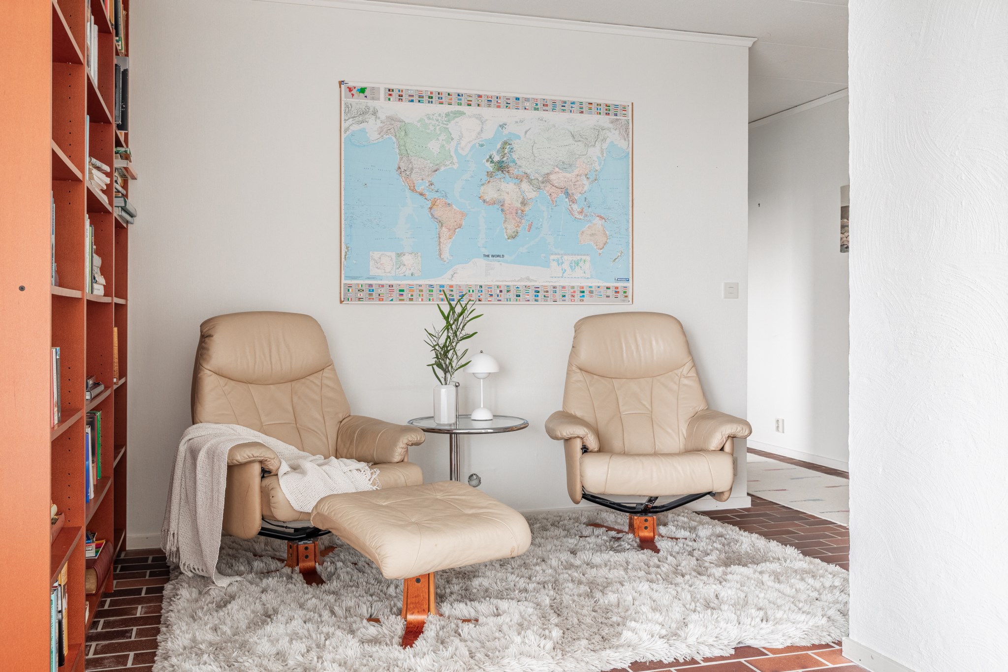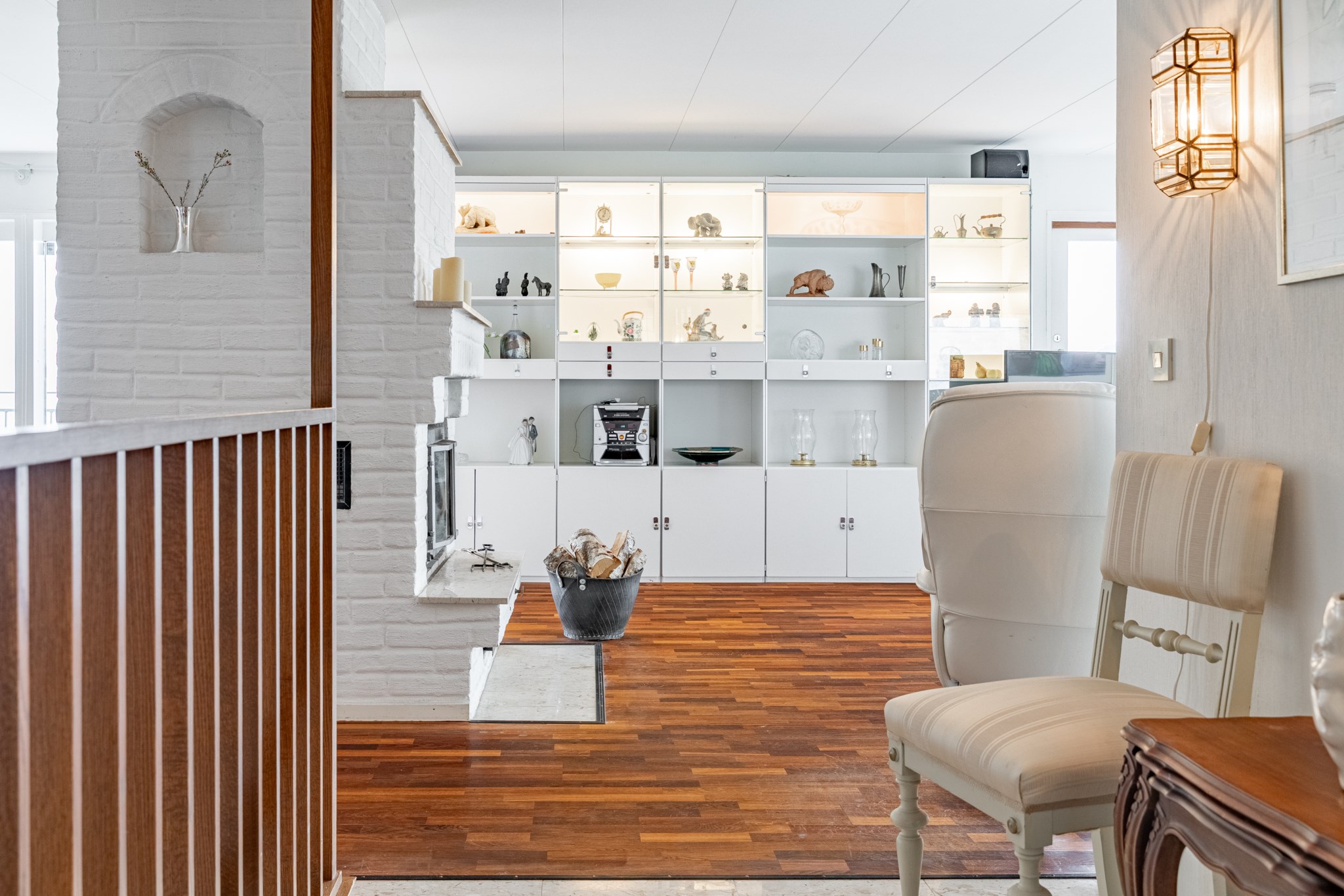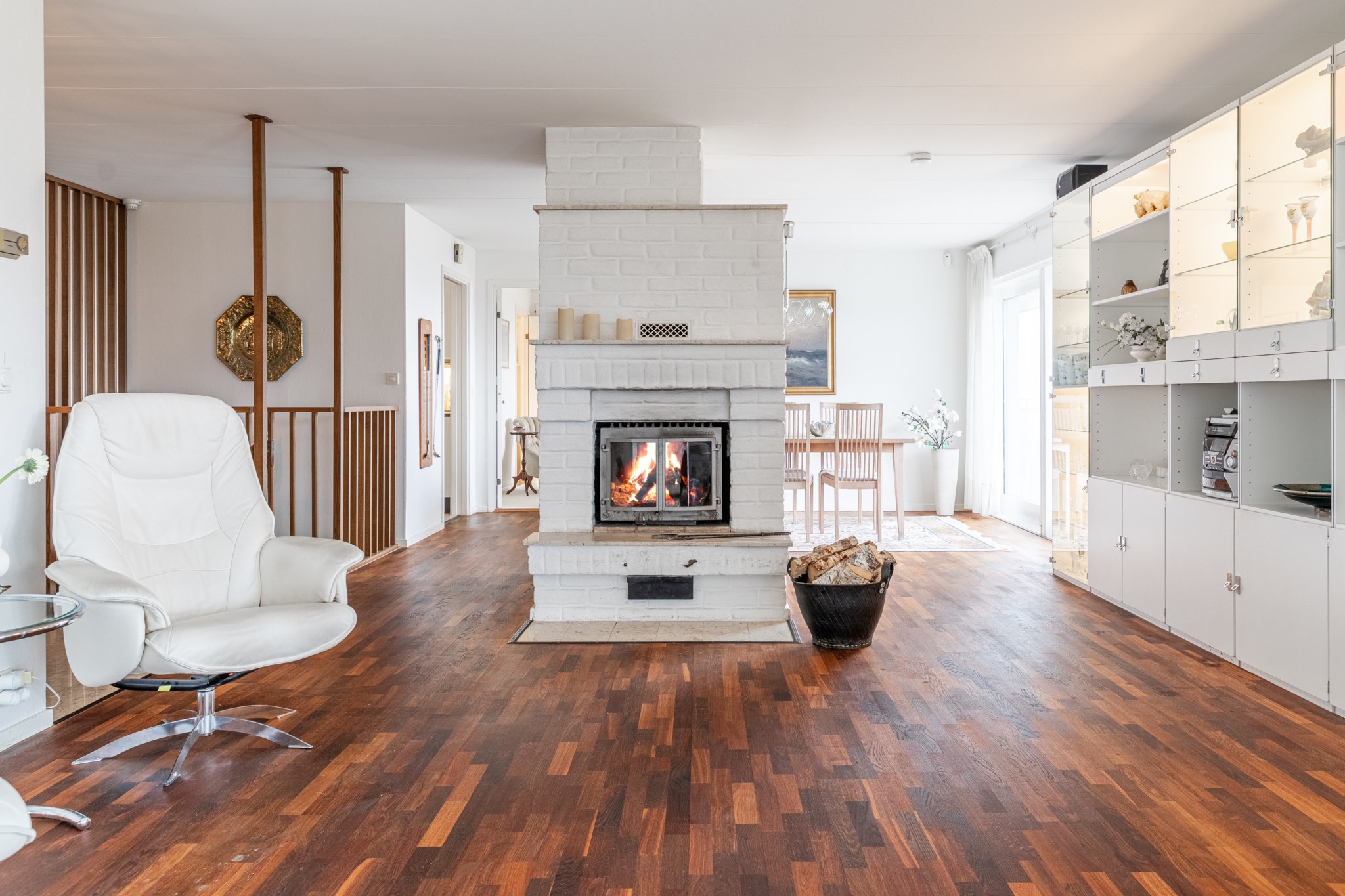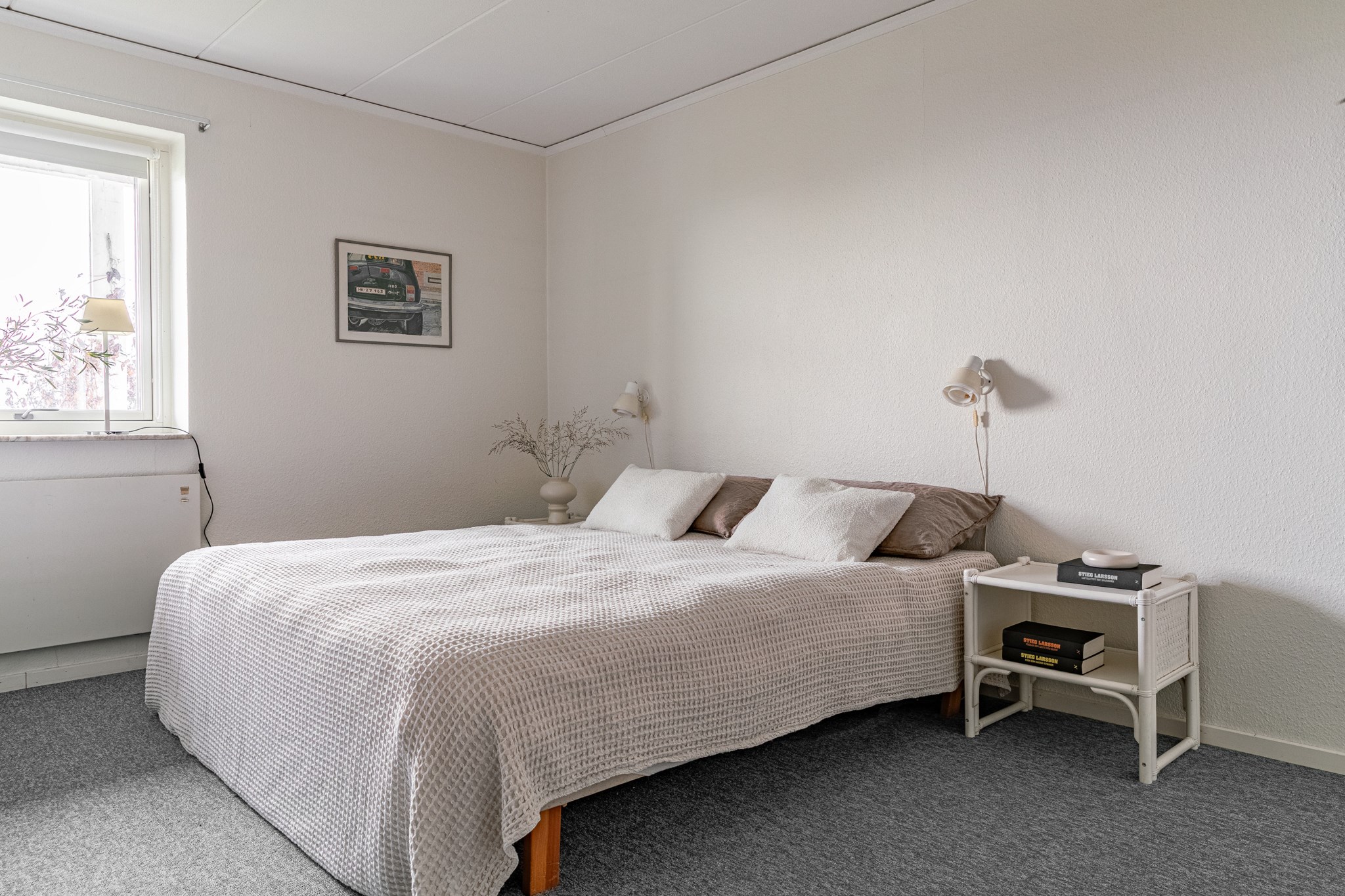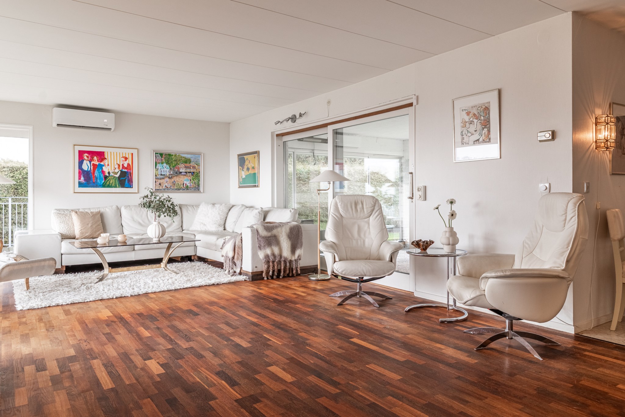 Inbyggt uterum med glaspartier mot öster och norr.BilplatsCarport för en bil samt ytterligare bilplatser på stensatt infart.TV- och internetanslutning
