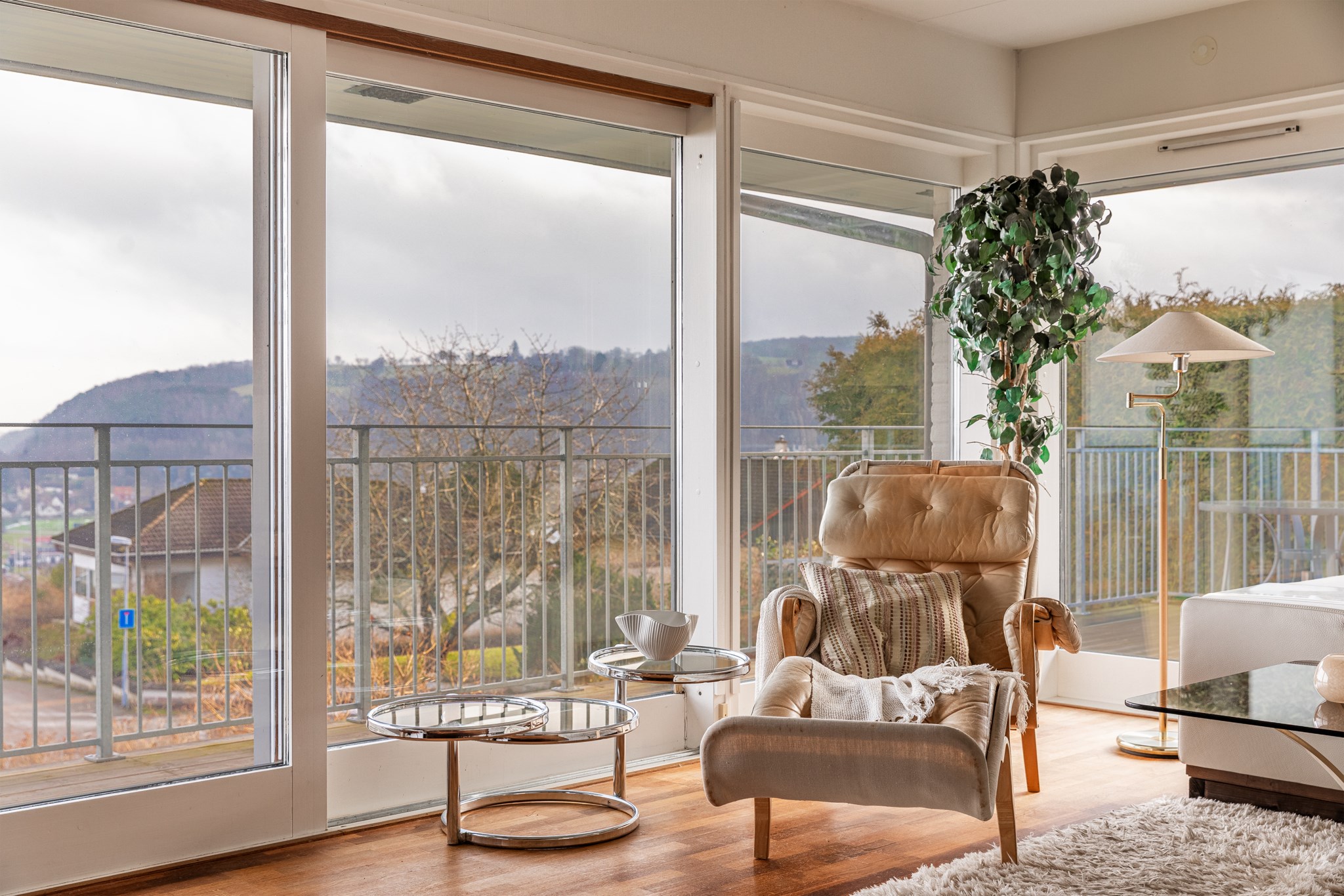 Privat, möblerbar balkong mot söder.