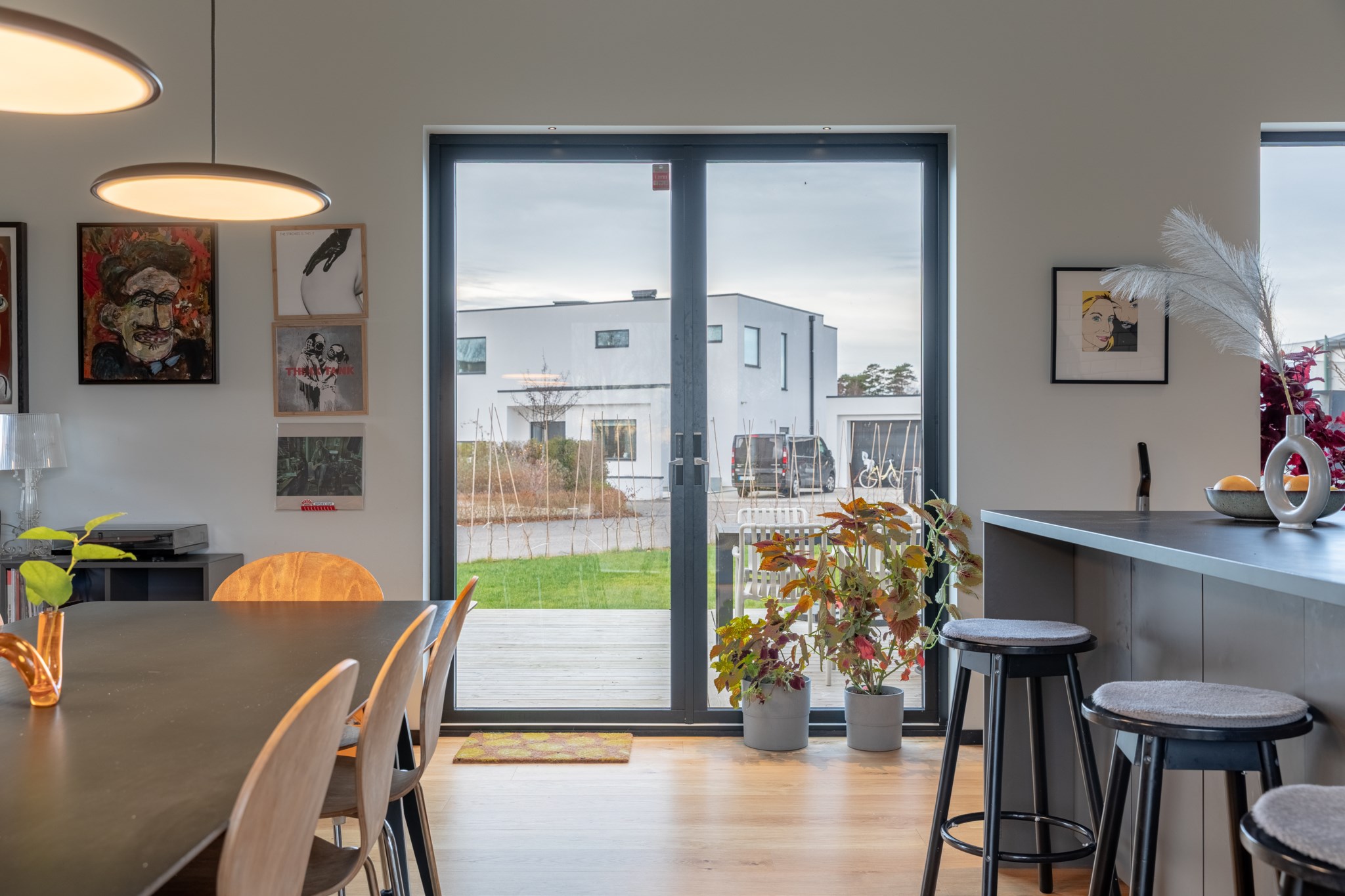 Välkommen till Vildapelvägen 27, en modern och inventiös familjevilla på hörntomt med bekvämt gångavstånd till inbjudande sandstrand, natur och bra kommunikationer. Här är det lätt att bo året om eller om du hellre vill, under de varma sommarmånaderna. Planlösningen är tilltalande med skönt och mjukt flöde och fin kontakt mellan såväl våningsplan som inne- och utemiljö. Här möter kaxigt modernt det praktiska och resultatet blir ett fantastiskt boende med wow-faktor. Stora fönsterpartier skänker vackert ljus och materialvalen är genomtänkta. Husets hjärta är det imponerande sällskapsrummet med öppen planlösning mot köket. Härlig takhöjd och fin access till två altaner varav en stor mot sydväst, perfekt för sena sommarmiddagar med vänner. I entréplan finns två sovrum varav ett master med walk-in closet och badrum en suite. Ytterligare badrum samt tvättstuga/groventré och på det privata ovanplanet finns allrum och två sovrum. Oinrett sidobyggnad att inreda efter eget behov, befrielse från fastighetsavgift i ytterligare 10 år, minimalt underhåll och fördelaktiga driftkostnader med effektivt uppvärmningssystem kompletterar denna tilltalande villa som får dig att längta hem redan innan du flyttat in.