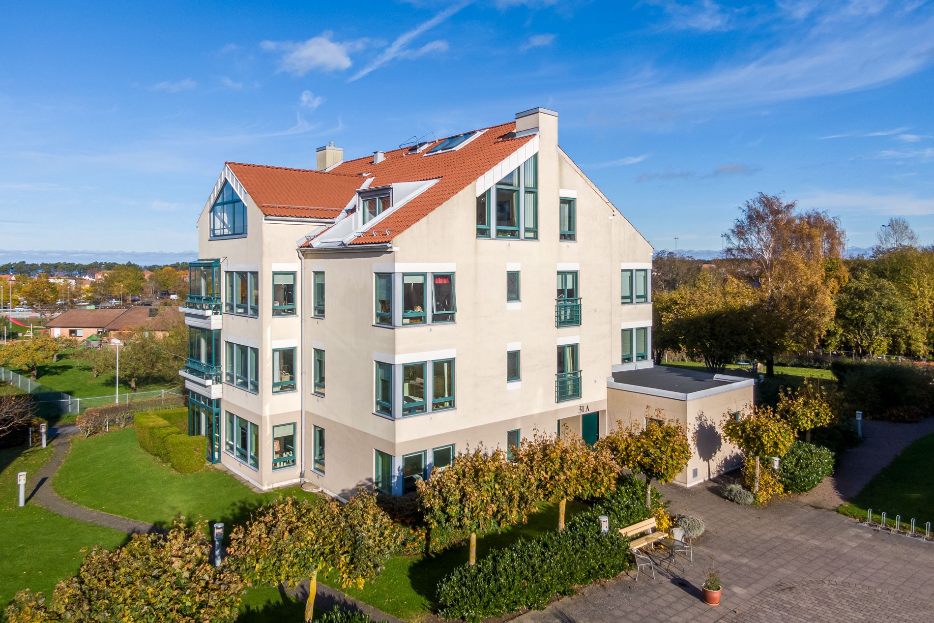 Denna ljusa och välplanerade lägenhet på tredje våningen erbjuder ett mycket trivsamt boende med stora sociala ytor och inventiös öppen planlösning. Här blir det luftiga sällskapsrummet bostadens självklara mittpunkt, där kök, matplats och vardagsrum förenas i en genomtänkt och trivsam helhet. Köket är rymligt och praktiskt utformat med god förvaring och arbetsyta. Den inglasade balkongen i västerläge blir ett extrarum som bjuder på utsikt över grannskapet och centrala Båstad. Lägenheten rymmer i övrigt två sovrum, ett helkaklat badrum och separat wc/tvätt. Bo i bekvämt seniorboende 55+ med tillgång till flera gemensamma utrymmen såsom tvättstuga, motionsrum, bastu, gästlägenhet och förråd. Läget är utmärkt med närhet till affärer, restauranger och smidiga gång- och cykelvägar. Här förenas komfort, trivsel och närhet till allt. Dessutom finns tillhörande parkering i carport.