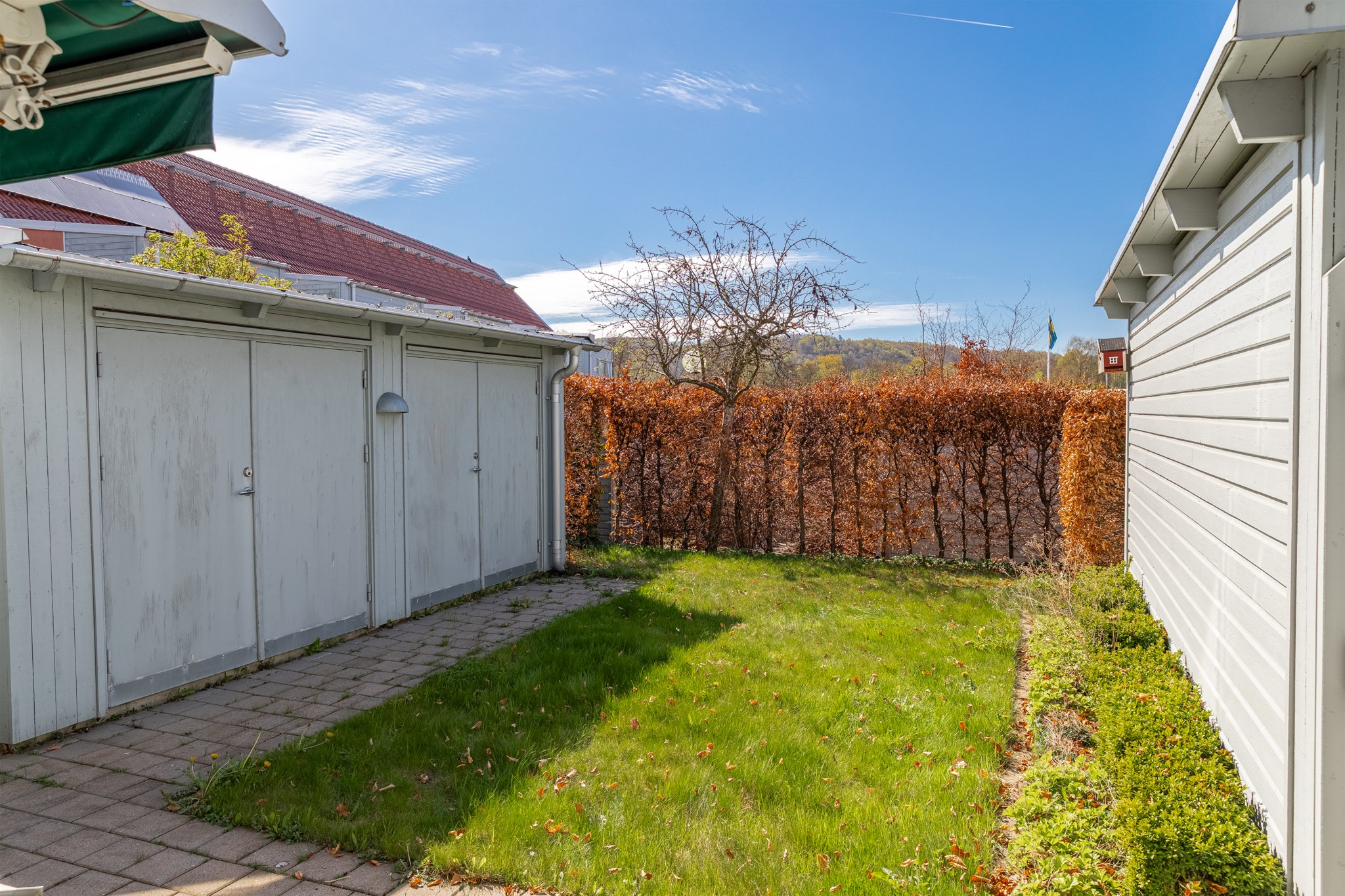 Byggnadstyp1½-planByggnadsår2007FasadPuts och träStommeTrä (luftspalt finns)Fönster3-glasBjälklagMellanbjälklag: TräTakBetongpannorGrundBetongplattaUppvärmningFrånluftsvärmepumpVatten/avloppKommunalt vatten året om. Kommunalt avloppVentilationMekanisk frånluftTomtenTrädgårdstäppa med lättskött gräsmatta, mindre och smidig blomsterrabatt samt stenbelagd uteplats med markis. Trädgården ramas in av en skyddande häck och kompletteras med praktisk förrådsbyggnad.UteplatsStensatt entrésida med plats för möblemang samt stenbelagd uteplats i soligt läge på trädgårdssidan.BilplatsParkeringsplats i garage.Övriga utrymmenFörrådsbyggnad på tomten. Garage i byggnad intill.TV- och internetanslutning