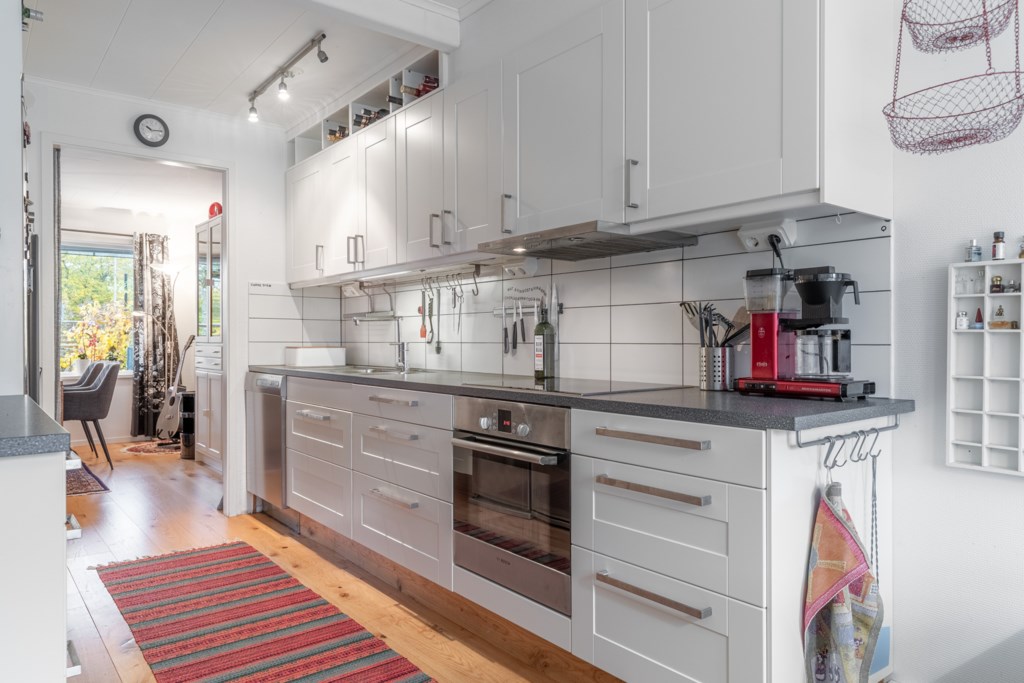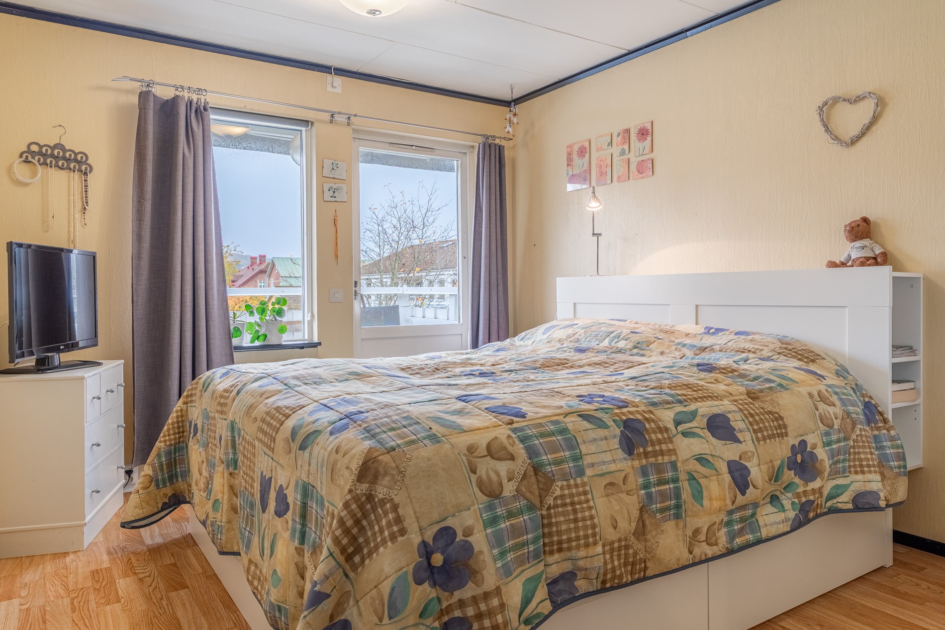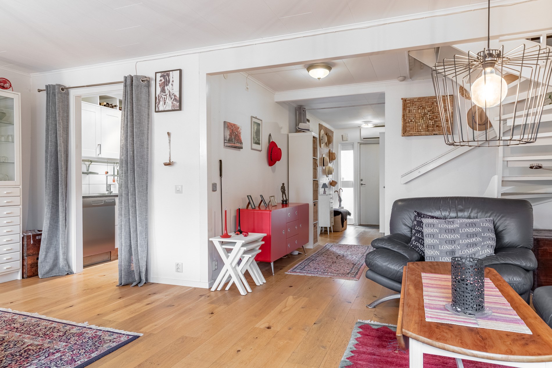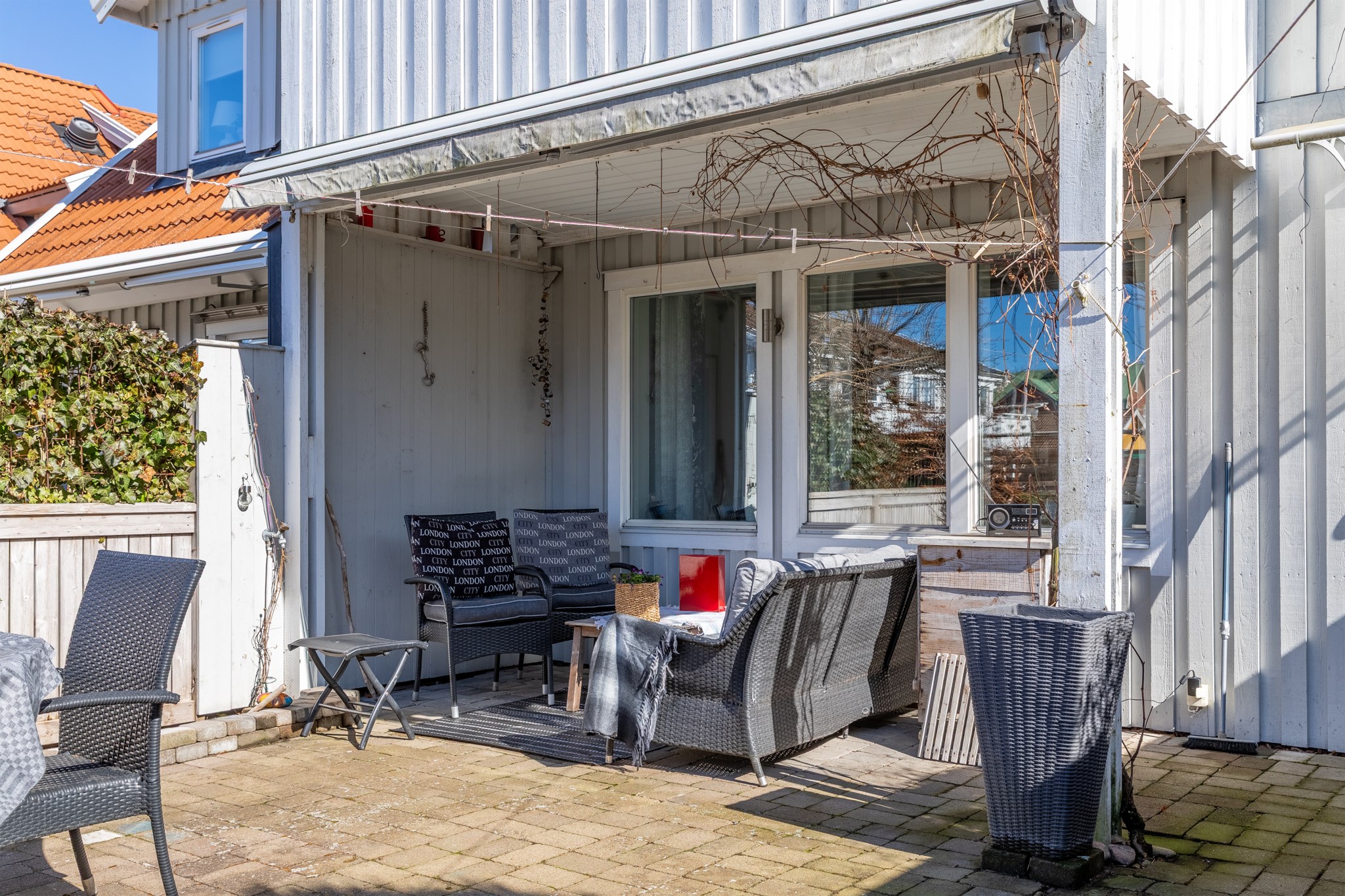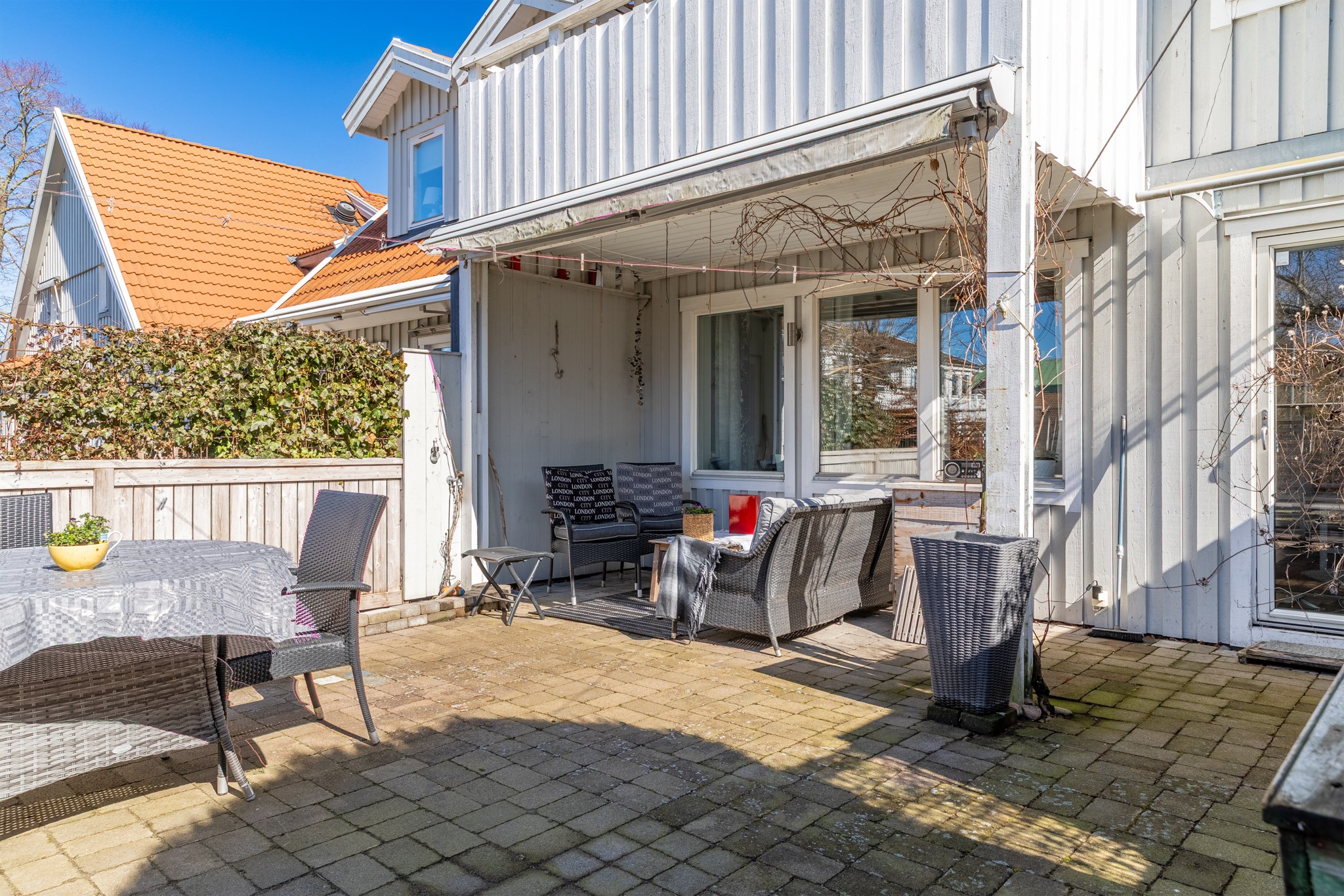 Byggnadstyp1 ½ planByggnadsår1984FasadTräStommeTräFönster3-glasfönsterBjälklagTräTakBetongpannorGrundBetongplattaUppvärmningLuft-luftvärmepump + oljefyllda elradiatorerVatten/avloppKommunalt vatten, Kommunalt avlopp.UteplatsEntrésidan vetter mot öster och välkomnar med morgonsol och stensatt uteplats mot den gemensamma innergården. På trädgårdssidan väntar insynsskyddad, lättskött och stensatt uteplats i soligt sydvästläge – delvis under tak – samt en balkong med markis i samma riktning.BilplatsCarport ingår i samfälligheten.Renovering2000 Badrum nere