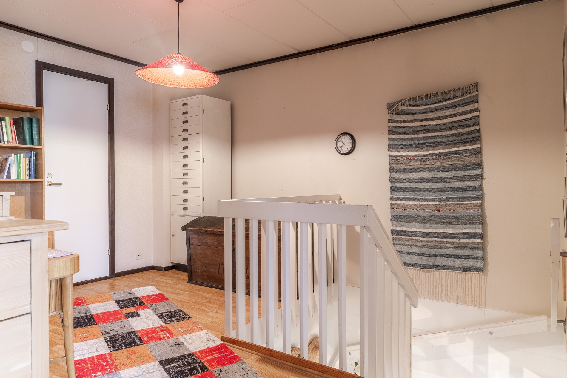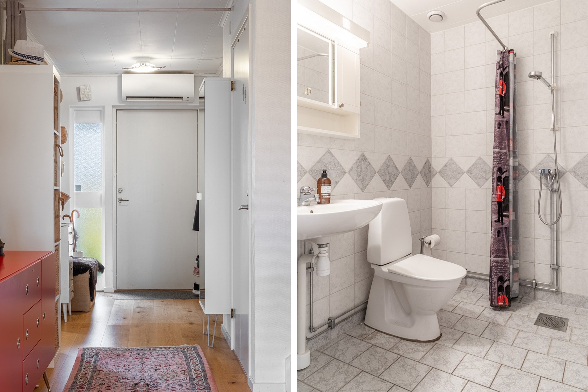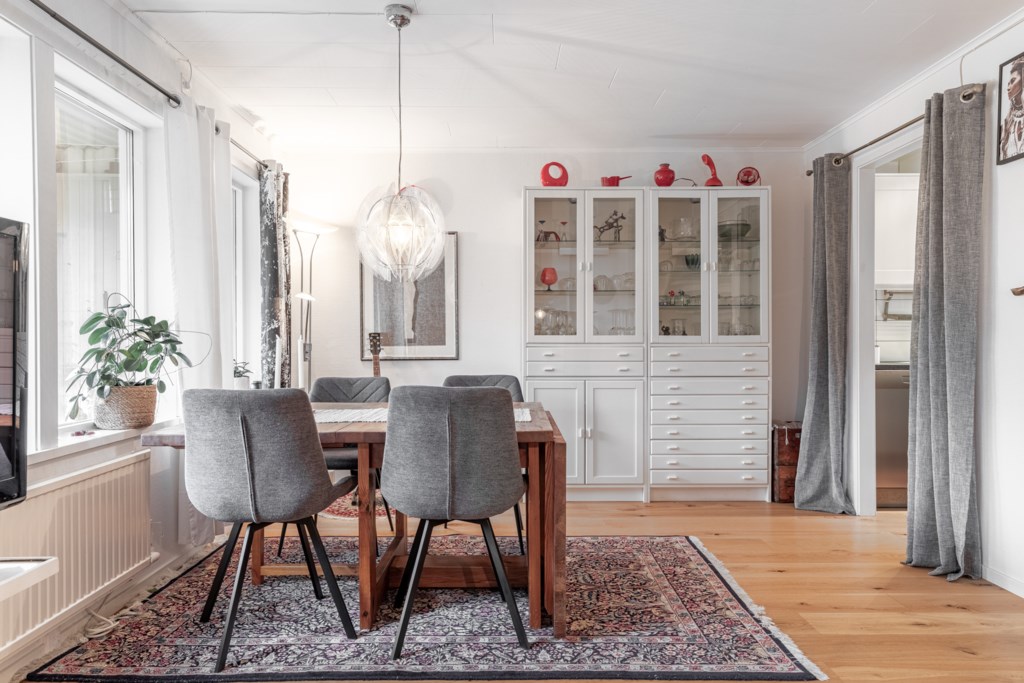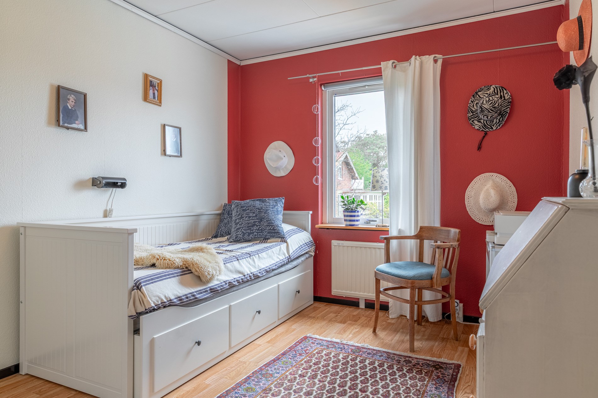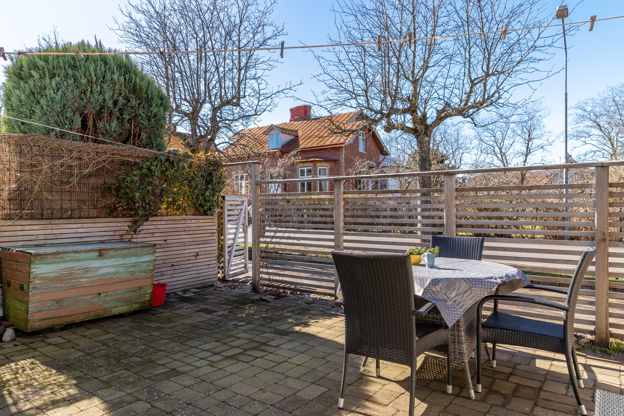 Byggnadstyp1 ½ planByggnadsår1984FasadTräStommeTräFönster3-glasfönsterBjälklagTräTakBetongpannorGrundBetongplattaUppvärmningLuft-luftvärmepump + oljefyllda elradiatorerVatten/avloppKommunalt vatten, Kommunalt avlopp.UteplatsEntrésidan vetter mot öster och välkomnar med morgonsol och stensatt uteplats mot den gemensamma innergården. På trädgårdssidan väntar insynsskyddad, lättskött och stensatt uteplats i soligt sydvästläge – delvis under tak – samt en balkong med markis i samma riktning.BilplatsCarport ingår i samfälligheten.Renovering2000 Badrum nere