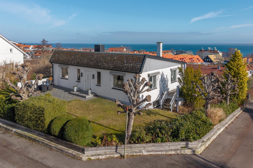 Välskött och trevligt hus i lugnt och centrumnära område i Torekov. Stora, ljusa sociala ytor, öppen spis, havsutsikt och soliga terrasser. Garage.